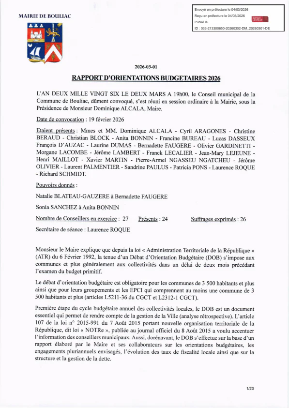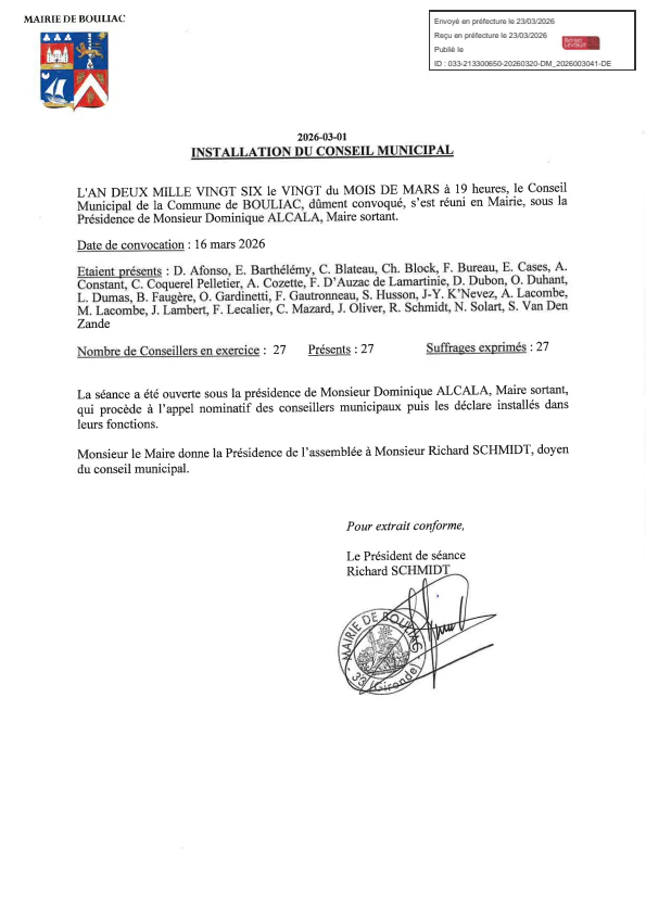 Retrouvez ici toutes les délibérations adoptées lors des séances du Conseil municipal de Bouliac.