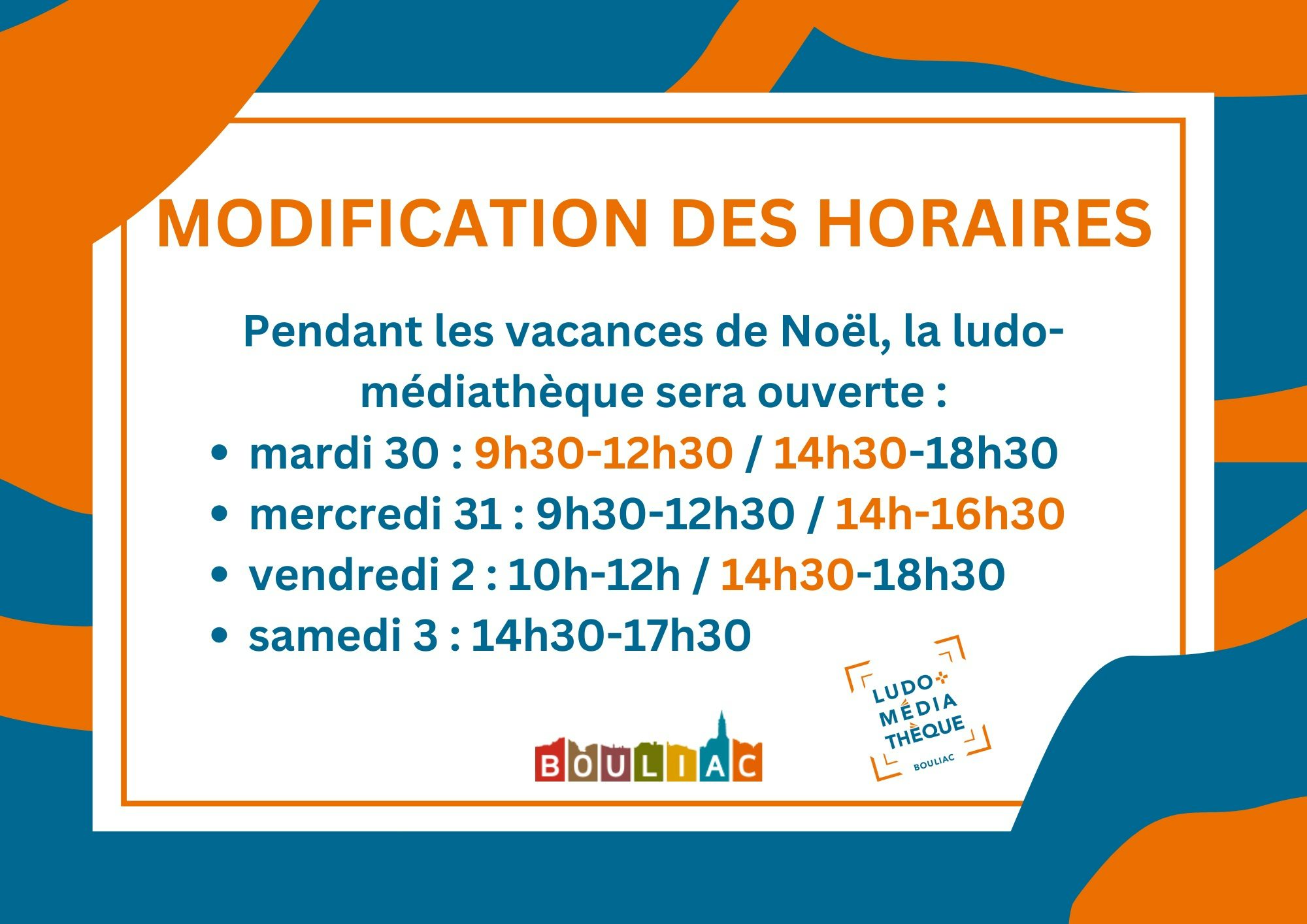 - Congés de fin d'année : Du mardi 23 au samedi 27 décembre