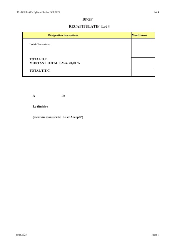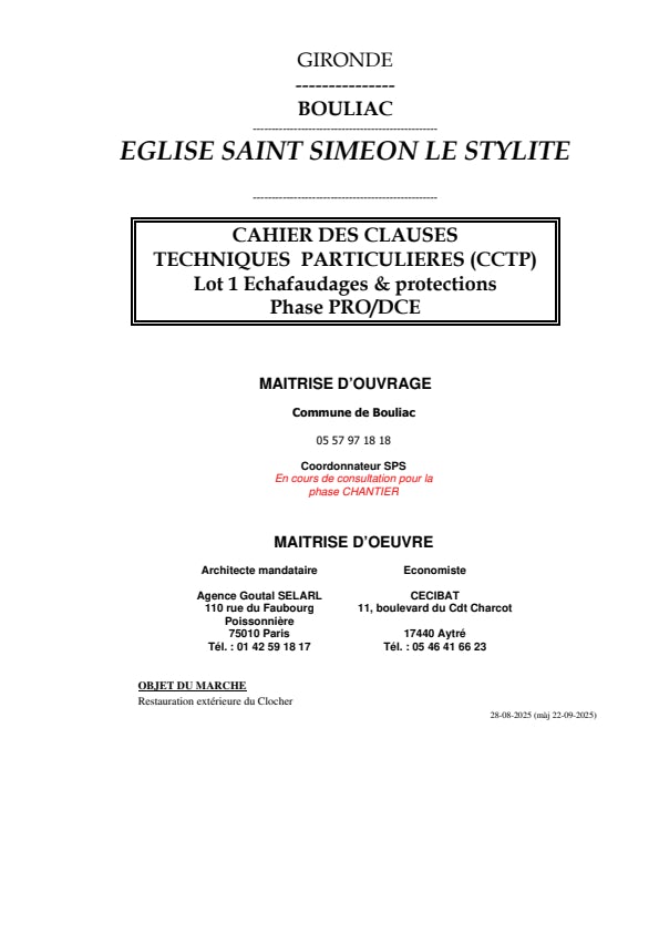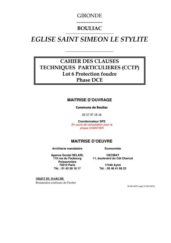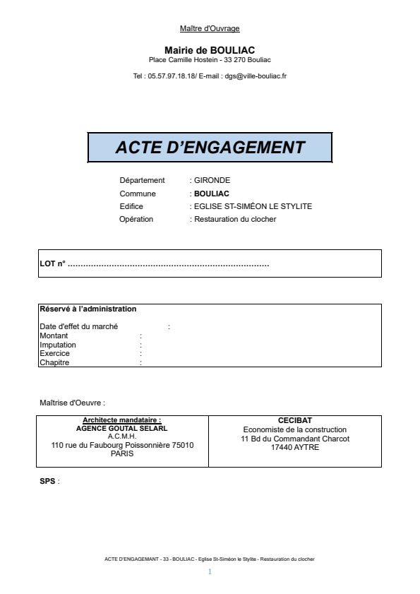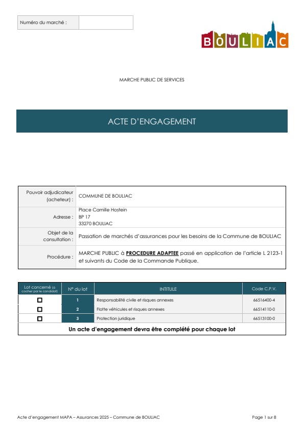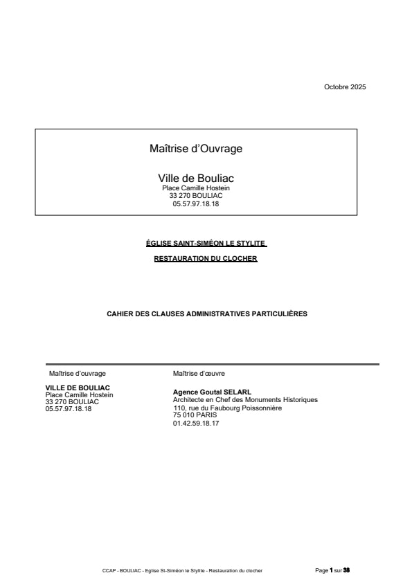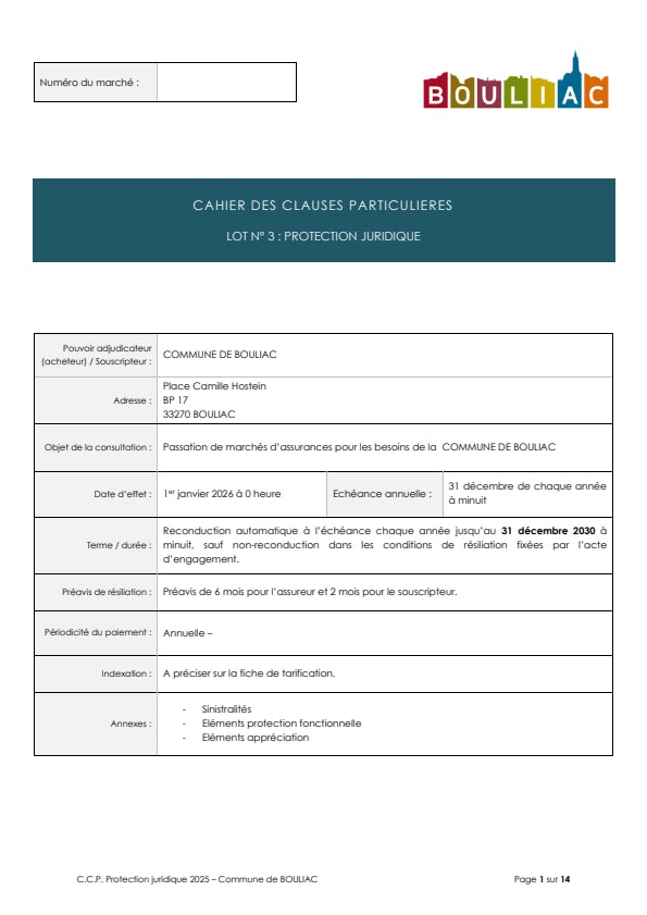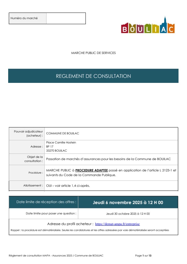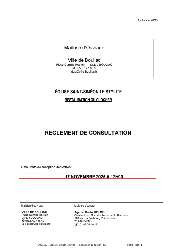 Date limite de réception des offres : Lundi 1er décembre 2025 à 15h