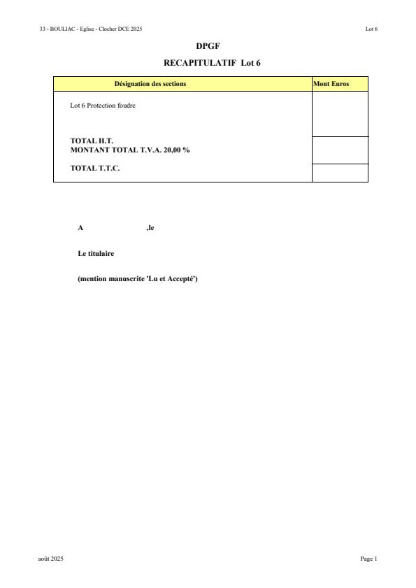 Date limite de réception des offres : Jeudi 6 novembre à 12h