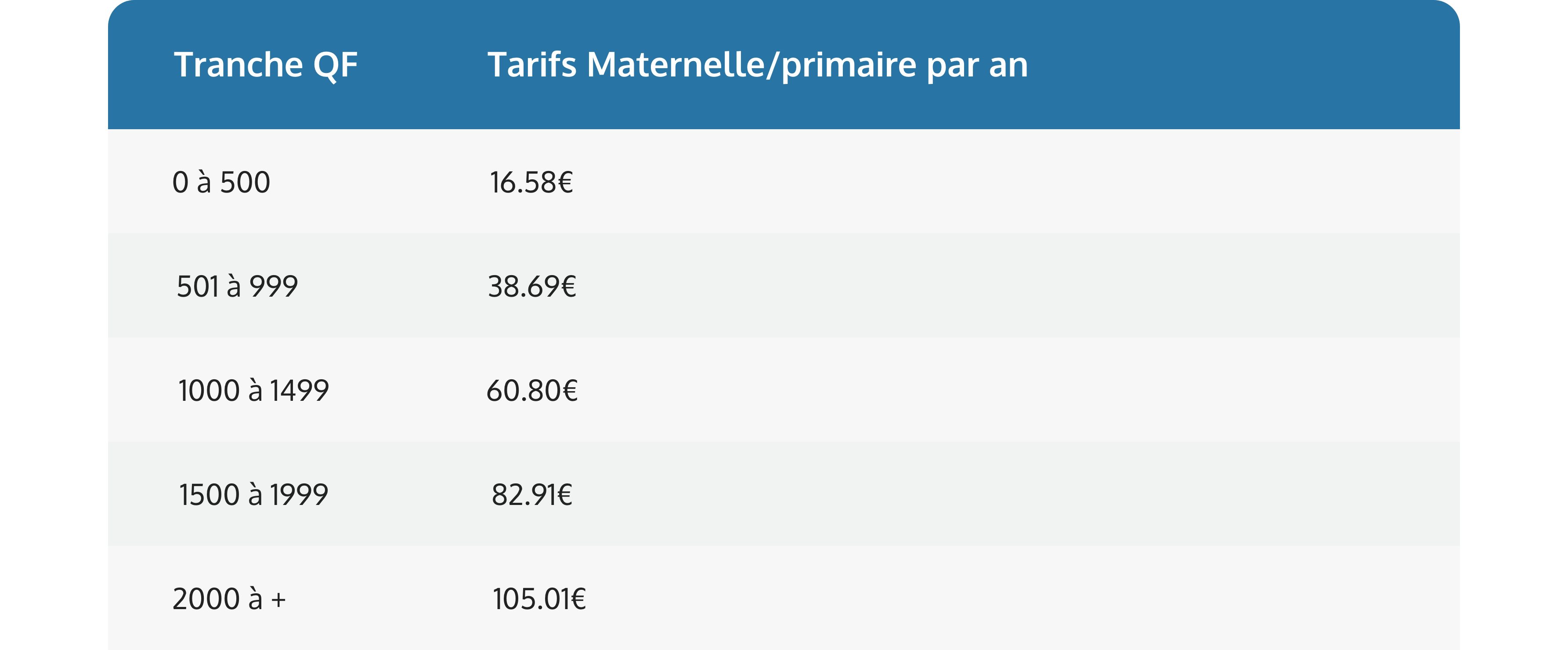 Le bus scolaire «Primaire et Maternel » est payant. Les tarifs sont déterminés en fonction de votre quotient familial (fournir dernier avis d’imposition en début d’année). A défaut la facturation sera établie sur la base la plus élevée. Les familles auront la possibilité d’être mensualisées. Des réductions seront accordées en cas de fratrie : – 20% pour 2 enfants prenant le bus, -30% pour 3 et plus.