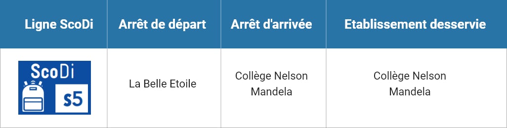 La ligne ScoDi part de 'La belle étoile' et dessert le Collège Nelson Mandela.